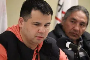 Paul Tuccaro, speaking at the press conference with Chief Allan Adam in the background (Photo credits – Ryan Hunt)