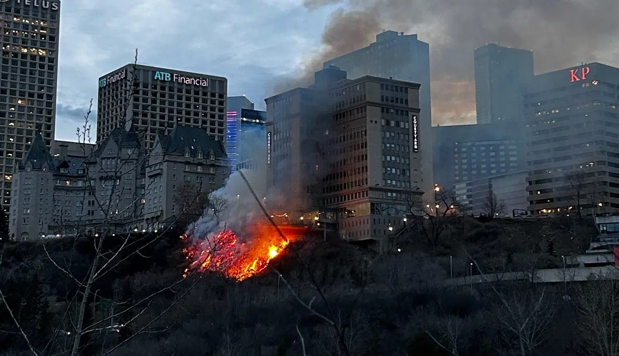 Edmonton Fire crews were on scene of a large brush fire near the Fairmont Hotel Macdonald in downtown Edmonton Thursday evening.