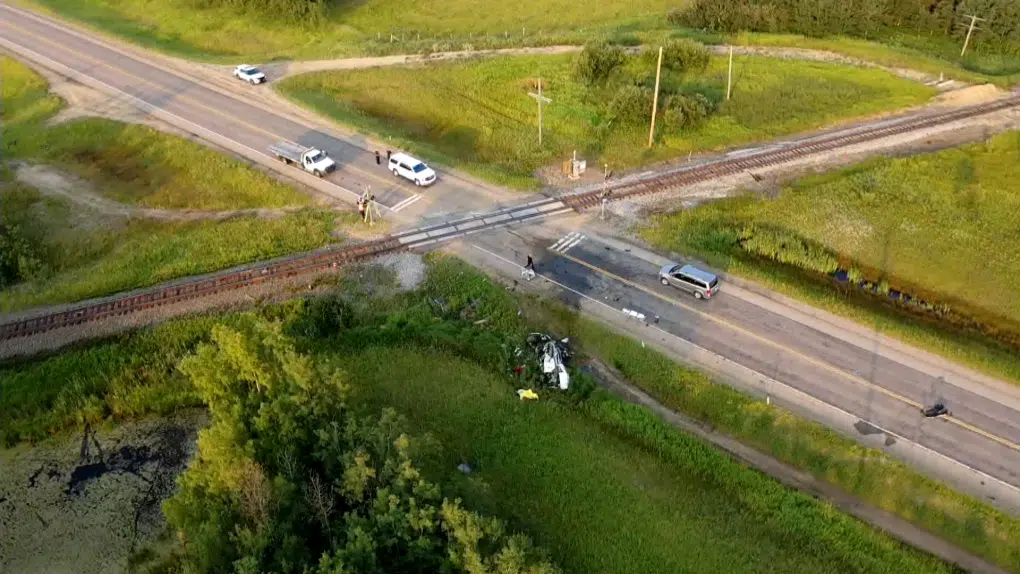 Alberta RCMP say one person is dead after a late-night collision between a train and vehicle in Leduc County.