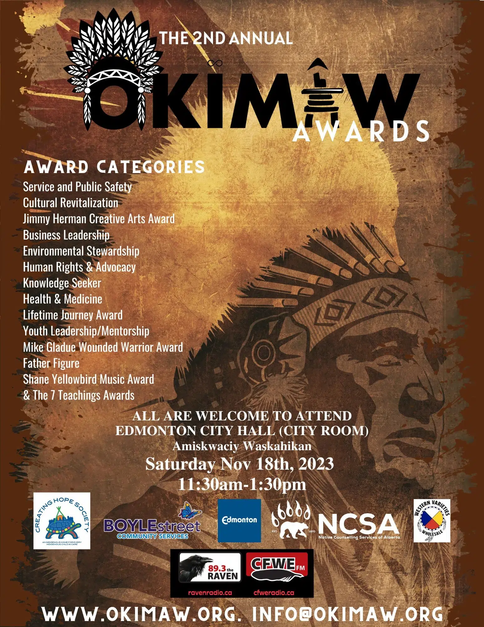 The 2nd Annual Okimaw Awards are set to go November 18 in Edmonton