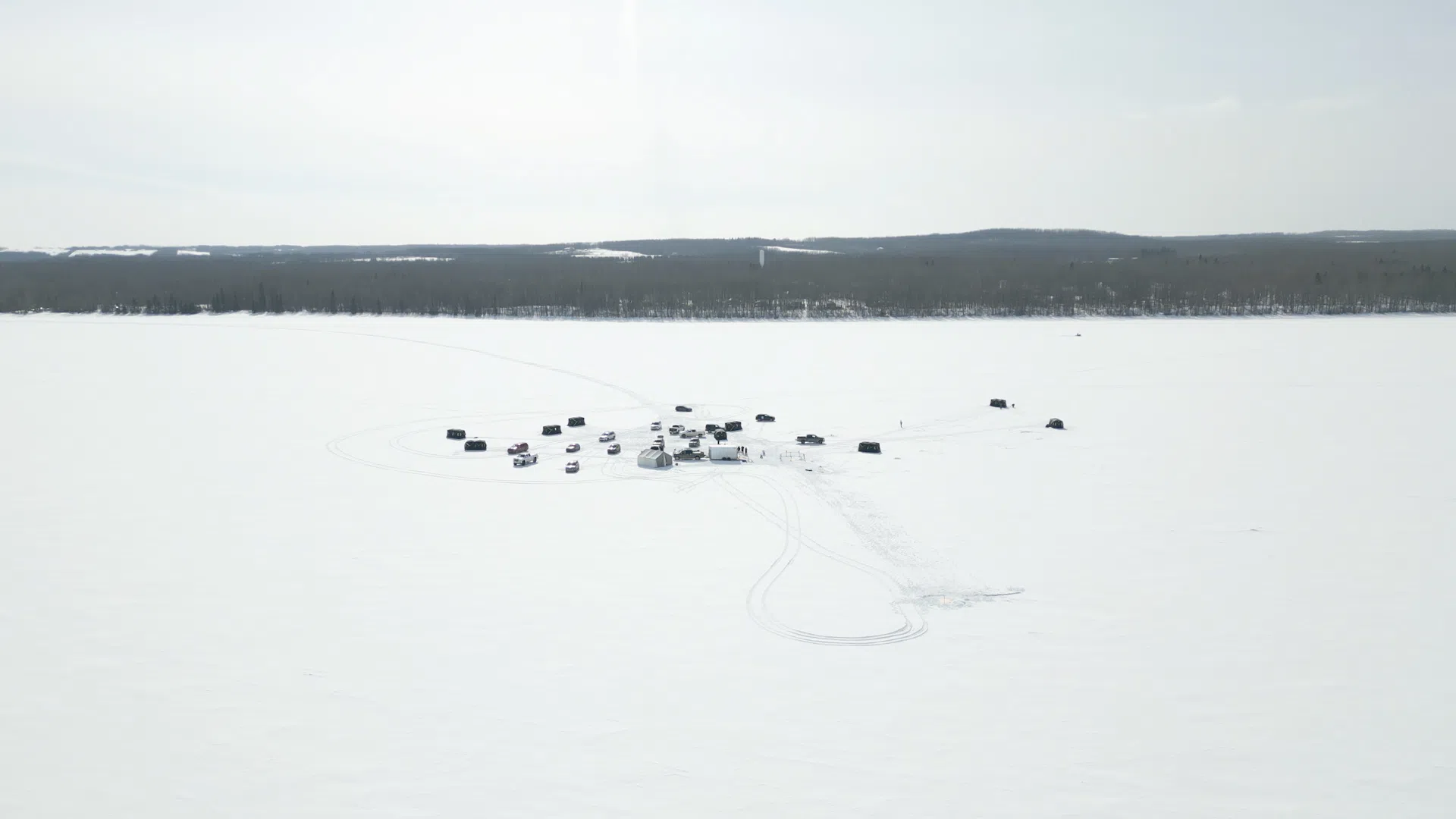 A camp on a frozen Pigeon Lake. File photo.