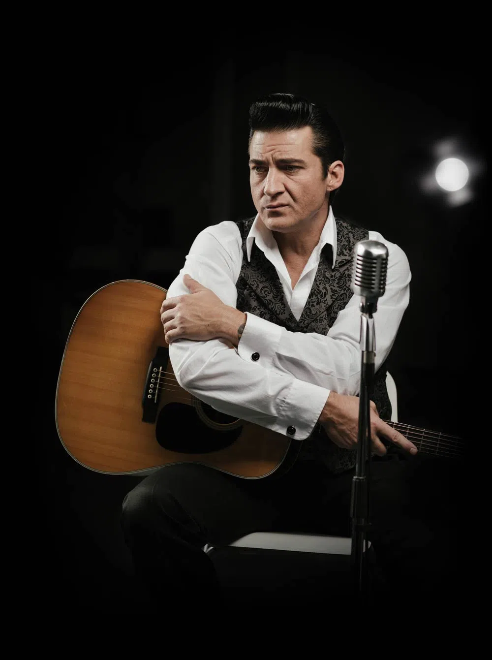 With his striking resemblance, spot on mannerisms and baritone voice, Shawn Barker embodies the character and spirit of Johnny Cash.