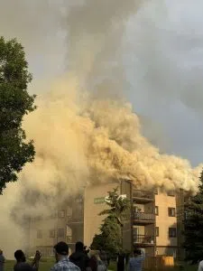 On Saturday evening, just before 8 p.m. fire crews were called to Hermitage Road and Huffman Crescent at Christopher County Apartments in northeast Edmonton where thick plumes of smoke could be seen.
