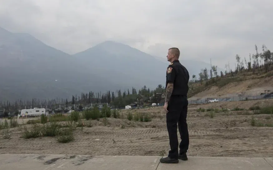 Jasper Fire Chief Mathew Conte addresses the media in one of the most heavily impacted neighbourhoods, roughly one year after the wildfire in Jasper, Alta., on Monday, July 21, 2025. Conte says 2024 was an unprecedented fire season but his team is addressing preparedness, including residential sprinkler systems and fire smarting, to prevent further losses. THE CANADIAN PRESS/Amber Bracken