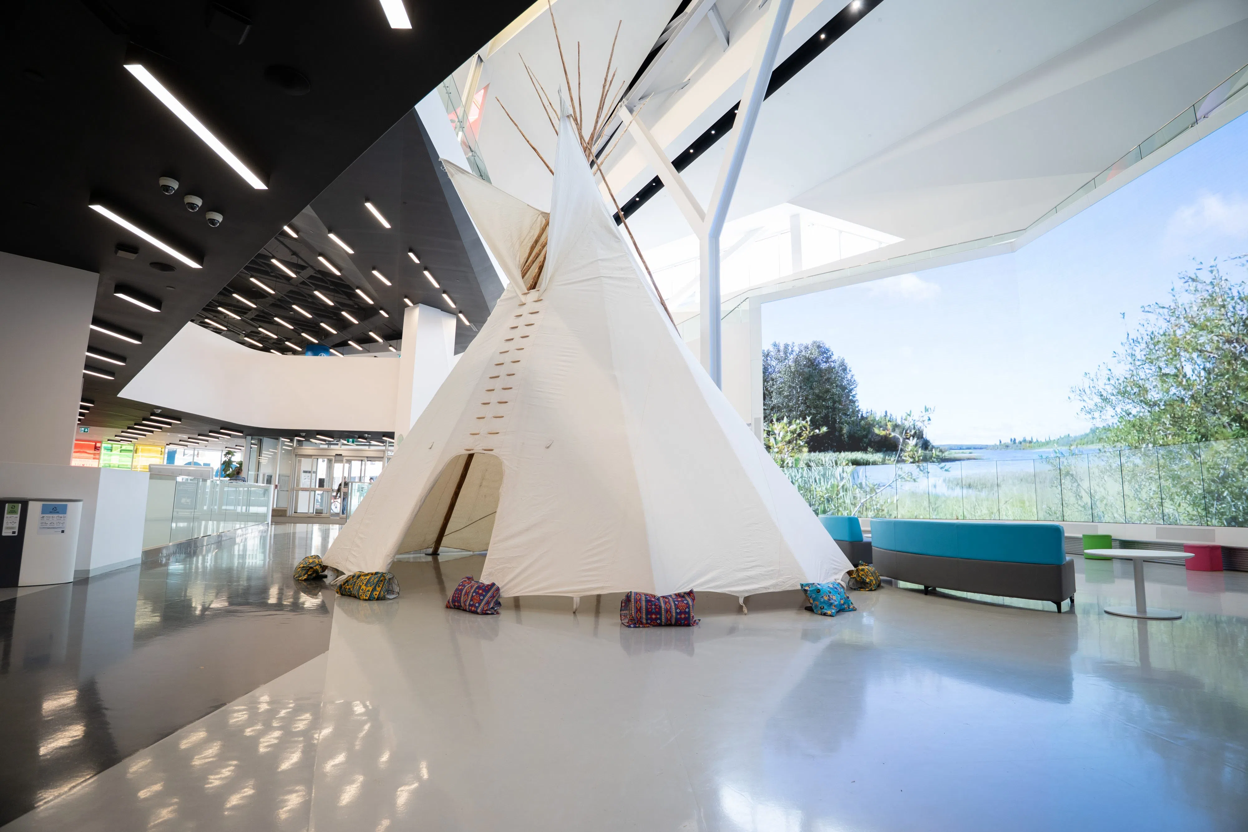 One of the most striking features this month is the teepee set up at the Stanley A. Milner branch downtown, on loan from Métis Child and Family Services. Visitors can experience it up close, and even view it from the third floor for a rare bird’s-eye perspective.