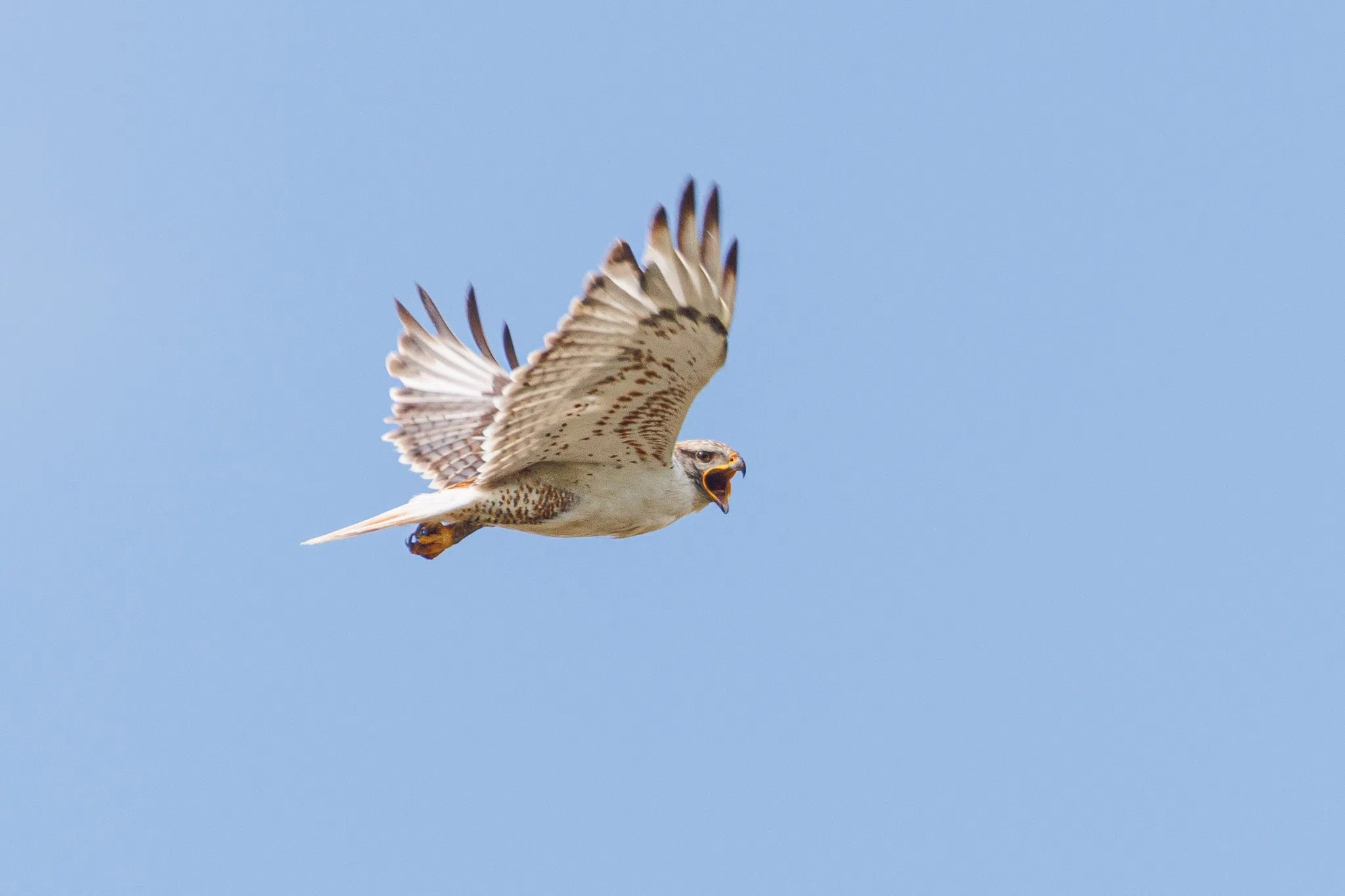 A Ferruginous Hawk flies through the air. Courtesy: My Wild Alberta