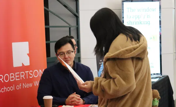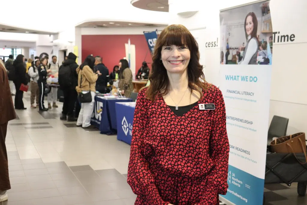 Fiona Olsen, Career Practitioner at Centre High, in front of the businesses set up (Photo Credits- Jackson Fontaine)