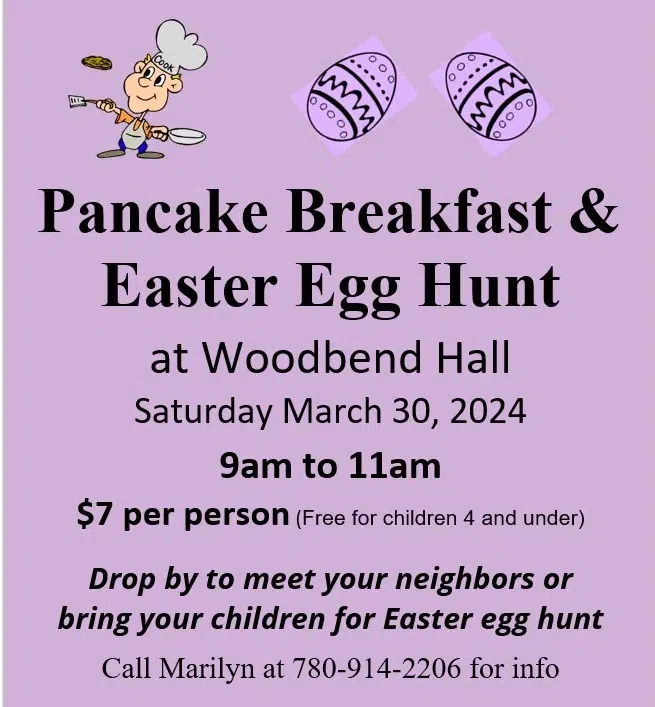 PANCAKE BREAKFAST & Easter Egg Hunt at WOODBEND HALL Saturday, March 30, 2024 9am to 11am $7 per person Free for children 4 and under Drop by to meet your neighbors or bring your children for an Easter egg hunt.