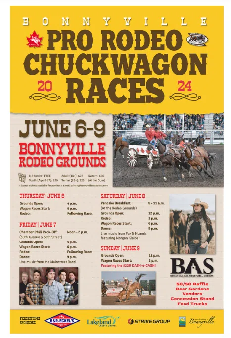 The four day affair will be jam packed with various activities and entertainment for people of all ages, including a chili cookoff, a pancake breakfast, and a number of musical acts. A 50/50 raffle, beer gardens, vendors, and food trucks will also be available for attendees to partake in. The Bonnyville Pro Rodeo and Chuckwagon Races are set to take place from June 6th to 9th at the Bonnyville Rodeo Grounds.