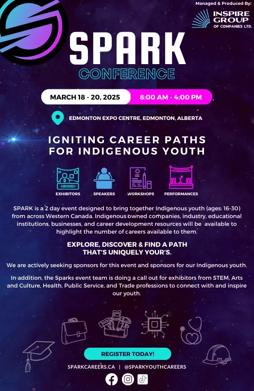SPARK is a 2 day event designed to bring together Indigenous youth (ages: 16-30) from across Western Canada.